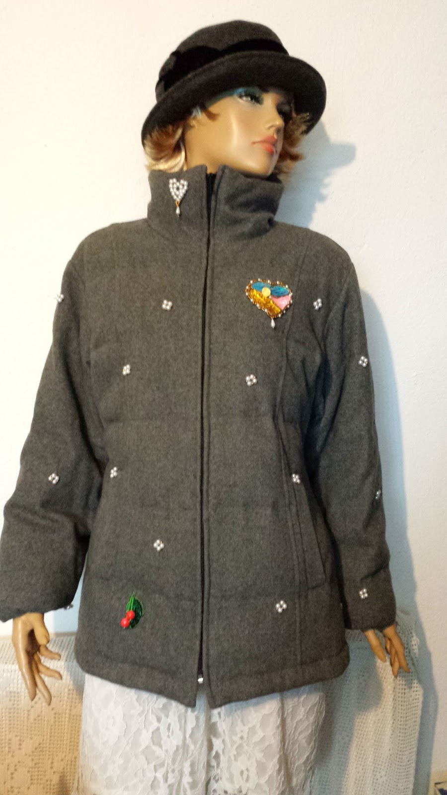 Capa vintage din lana groasa naturala,necaptusita dar foarte calduroasa,stare perfecta, broderie manuala cu flori din margele si paiete,lungime-77cm,modelul este unicat !